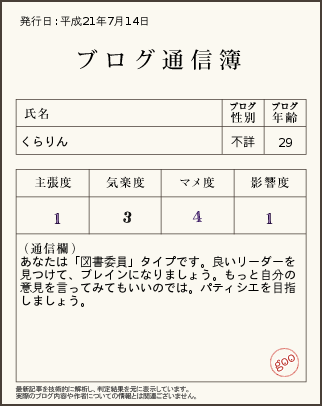 ブログ通信簿とやらのを発見したので設置して見ました