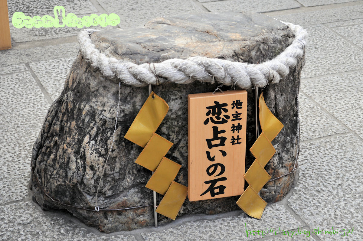片方の石から反対側の石に目を閉じて歩き、無事たどりつくことができると恋の願いがかなうと伝わる願掛けの石とのこと。